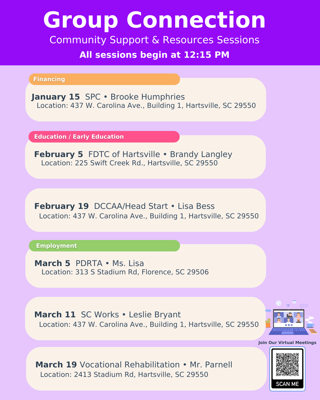 We serve children and families in Darlington, Hartsville, Lamar, and Society Hill communities.